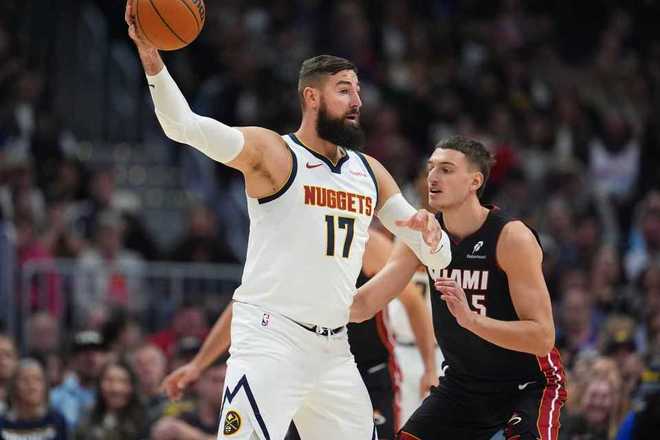 约基奇33+15+16掘金力克热火 热巴伤退维金斯22分引3人20+