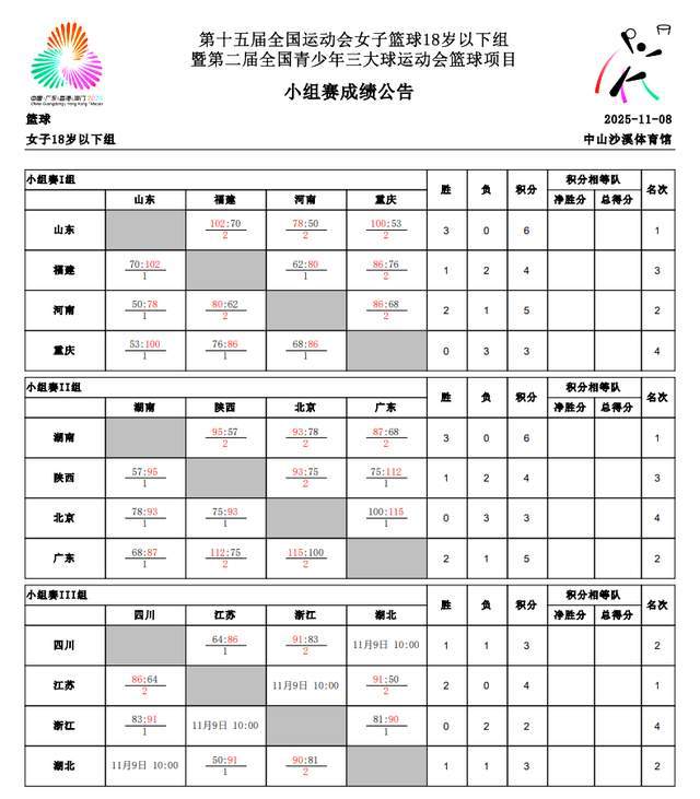 不知不觉间,全运会U18女篮已经来到了第4个比赛日,第一和第二小组的比赛已经全部打完了,积分榜最新变化也来了,8强已经敲定了6个席位。